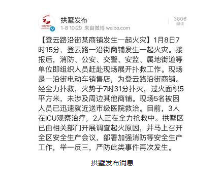 1月8日,上周末,杭州一家電動車賣場發(fā)生嚴重火災(zāi),造成5人嚴重受傷。